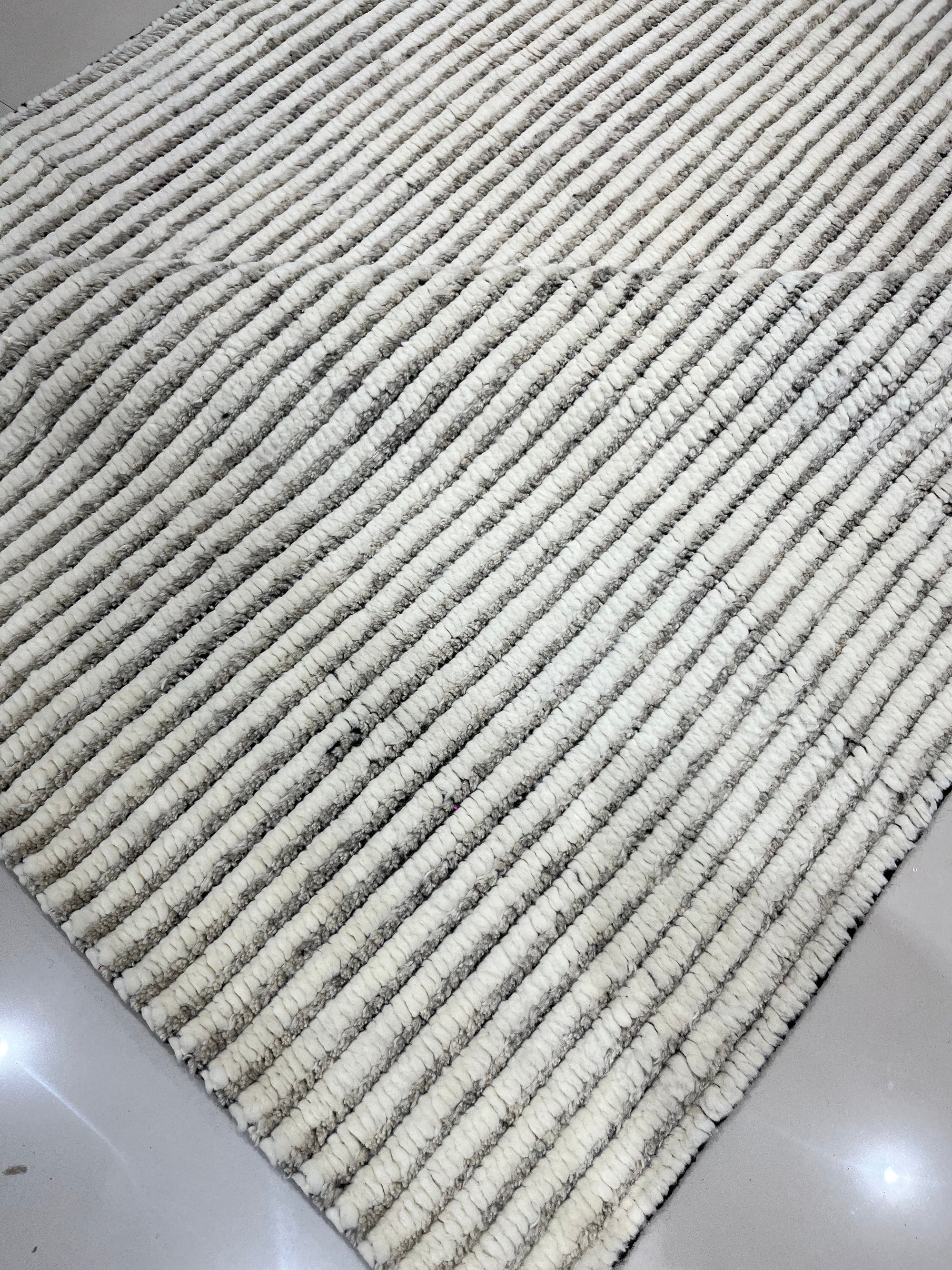 Introduce a grounding element of understated elegance to your living space with this subtly captivating floor covering. Delicate, charcoal-toned lines cascade vertically against a serene, ivory backdrop, creating a visual texture that enriches without overwhelming. The measured rhythm of the stripes offers a contemporary sensibility, while the rug's inherent warmth evokes a touch of homespun comfort. A perfect foundation for minimalist interiors or a sophisticated counterpoint to bolder decor, this piece promises to elevate any room with its refined simplicity.